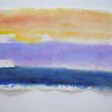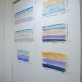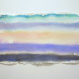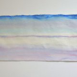 A series of abstract landscapes in watercolour on handmade Khadi paper. Sense of Place: Antarctica, attempts to capture the intense colour and light of Antarctica and its expanses of ice, sea and sky in paintings which utilize horizontal bands of colour and a panoramic shape reflective of the landscape.